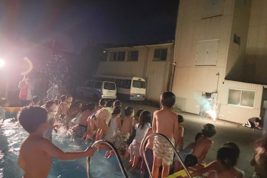誓念寺こども園のばら組さん(5歳児)と誓念寺中野こども園のゆり組さん(5歳児)が、8月30日と31日に合宿保育を行いました。